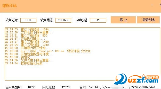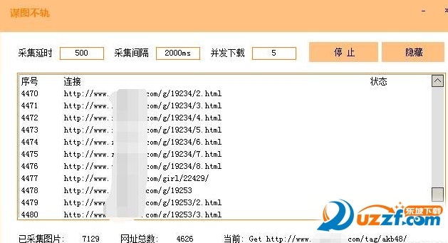 2、如图所示,已经开始,采集图片、网址总数在下面有显示