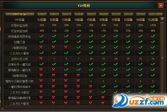 主宰之王VIP享有多种游戏特权,VIP等级越高特权越多。每次VIP都可以获取相应的礼包,越高级的VIP礼包奖励越丰厚。