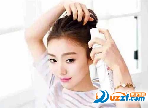 用手指在头顶抓出蓬松感,再喷上定型水固定刘海