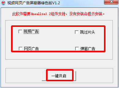 勾选开头广告、弹窗广告、网页广告等点击一键开启。