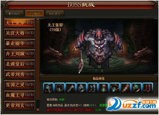 2、击杀个人boss有等级限制,等级达到要求后,消耗副本挑战卷才可进入