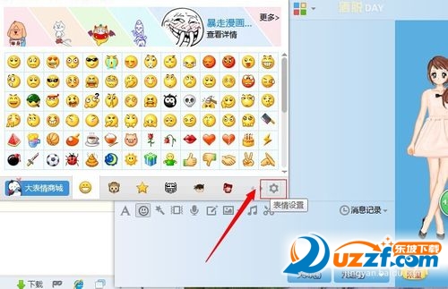 打开QQ选择对话框后,点击QQ表情对话框右下角的【表情设置】按钮;