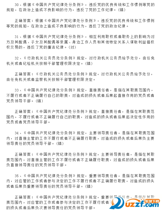 8、《党章》规定,党的地方各级纪律检查委员会和基层纪律检查委员会在同级党的委员会和上级纪律检查委员会分别领导下进行工作。(错)