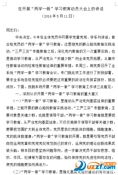 开展“两学一做”学习教育的具有重大的意义,要多开展两学一做动员大会,东坡小编整理了2016开展两学一做动员大会讲话稿,内容详细完整,这是doc格式文档,已经排版好,可以直接下载打印。