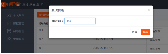 在学生管理界面,点击新增班级按钮,输入班级名称完成班级创建。