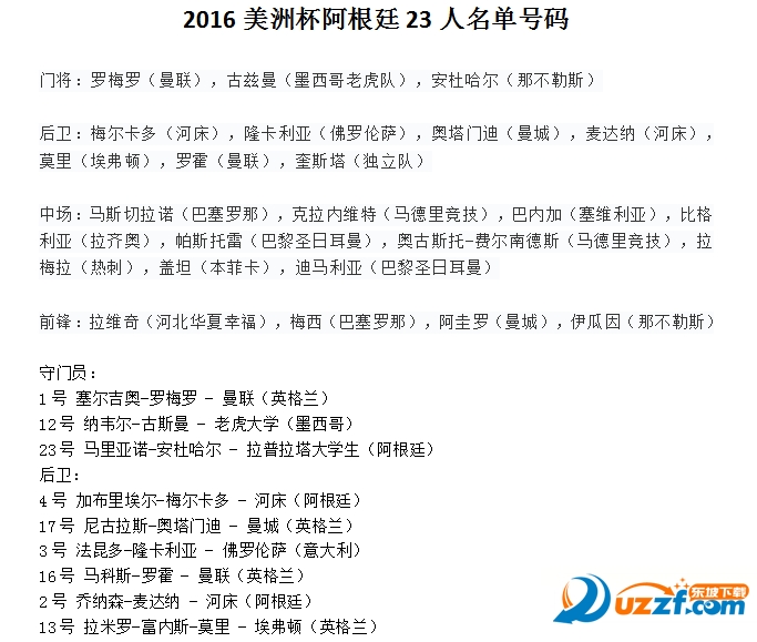 2016美洲杯开始了,大家比较关注的阿根廷球队名单是什么呢?东坡小编整理了2016美洲杯阿根廷23人名单号码,这是官方最新发布的,想看看你喜欢的队员在里面吗,那就快来下载吧。
