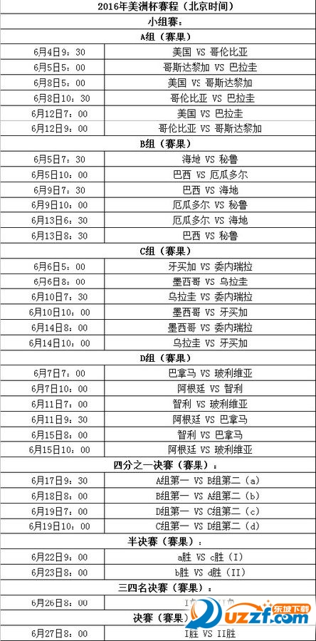 A组:美国国家男子足球队、巴拉圭国家男子足球队、哥斯达黎加国家男子足球队、哥伦比亚国家男子足球队