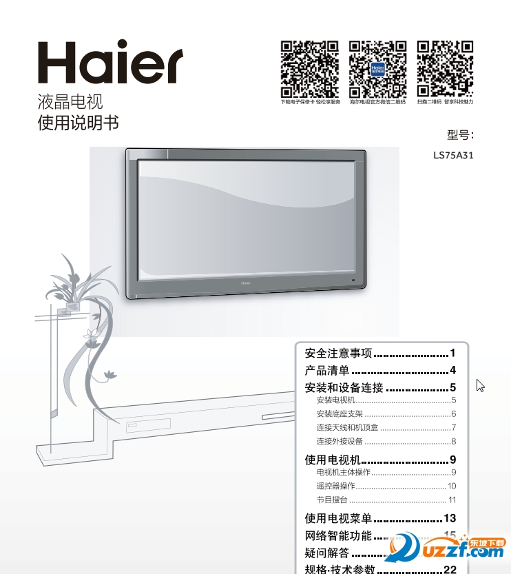 海尔电器家喻户晓,小编给大家分享一下海尔LS75A31使用说明书,方便日后对电器不懂的地方查阅,小编提供的格式的PDF,欢迎下载