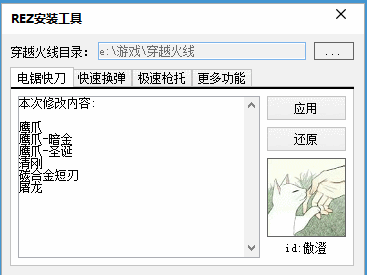 给需要使用到cf的一些最新的REZ制作工具的朋友介绍下面的这款CF傲澄多功能过检测REZ制作工具,可以自动的帮助你免费的生成你需要的一些rez工具,有需要的就可以现在去下载试试!