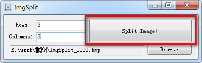 2、导入需要切割的图片,然后设定切割的行数和列数,再点击右边大大的「Split Image!」按钮,
