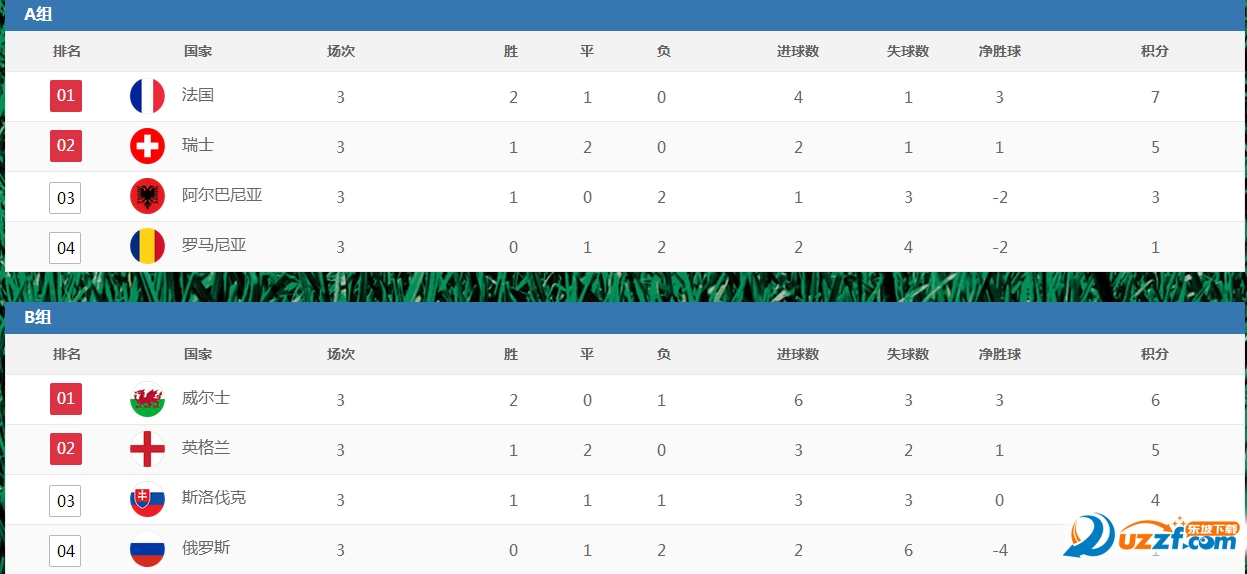 2016年欧洲杯积分榜预览