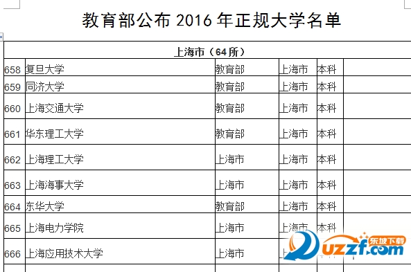 教育部公布2016年正规大学名单,其中上海市有64所高校在此名单中,小编带来了2016年上海正规大学名单,谨防野鸡大学,欢迎同学们来下载查看!