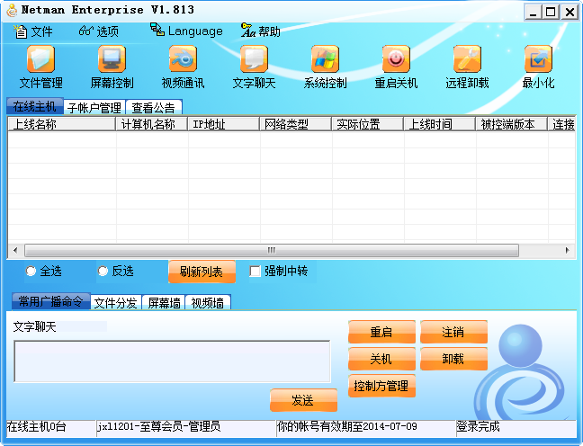 12.支持多管理员账号(子账号功能):可设定多个管理员,并限定每个管理员的权限,每个管理员都可对被控端进行操作。