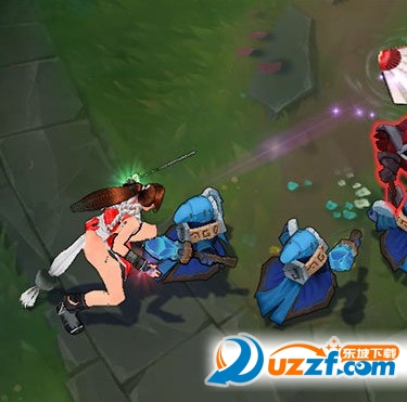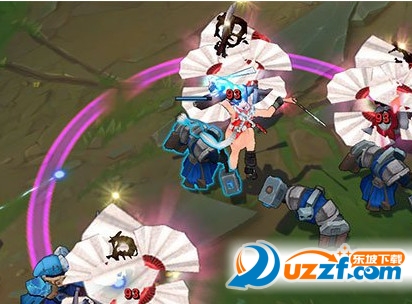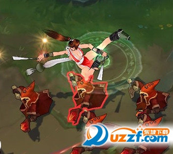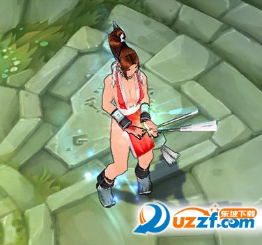 皮肤完全采用拳皇游戏中的不知火舞的造型,大细腿,高叉腰裤,特别是火辣辣的大胸,怎么让人不爱。