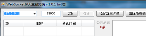 首先打开我们自己开发的websocket服务端,是它处于监听请求的状态。这里我们监听的IP127.0.0.1,端口29000