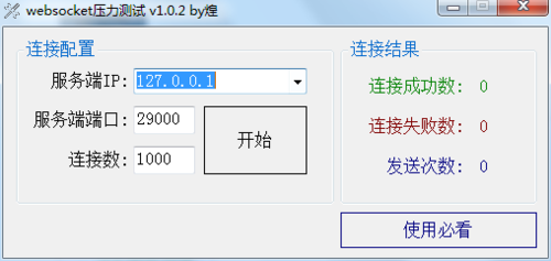 websocket压力测试工具是一款便捷实用的websocket压力并发测试工具,方便的为websocket服务端进行并发压力测试,还可以测试同时多少客户端接入。