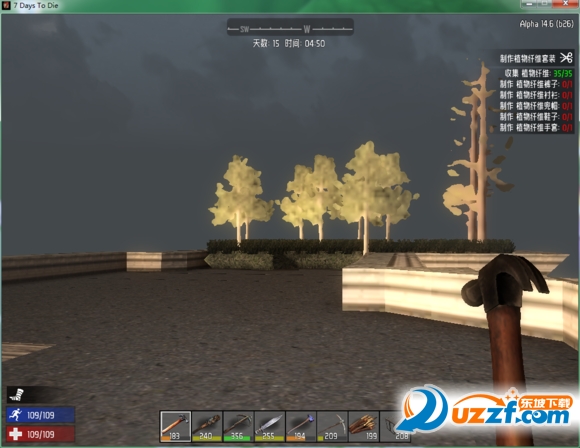 出生最基本的事情不用我说,就是做把石斧,出生就分出来两种人,一种是先升级工具品质,一种是直接出去搜刮,我是第一种,这里只说我的做法,出生先砍倒一颗1000耐久得树(在沙漠就拉得儿倒吧),然后砸出400左右的石头,找石头得路途收集羽毛收集到就做箭,这个时候不刷工具品质,等到晚上再刷工具品质,等你收获差不多的时候,基本12点了,运气好的有60多根箭,那就可以做一把木弓在手里,然后找到你要去的方向,杀一个僵尸用斧头将尸体砸得粉碎(鞭尸= =)用骨头做把骨刀,再做个加固的木棍,前期准备完毕