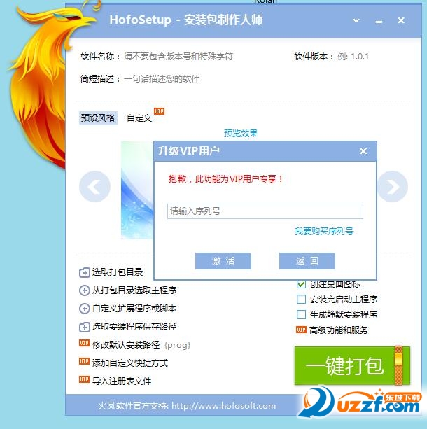 HofoSetup安装包制作大师一些功能需要开通vip才能使用,这里就给大家带来hofosetup 破解补丁,免费破解hofosetup vip序列号,免费获得HofoSetup vip用户,享受全部功能。