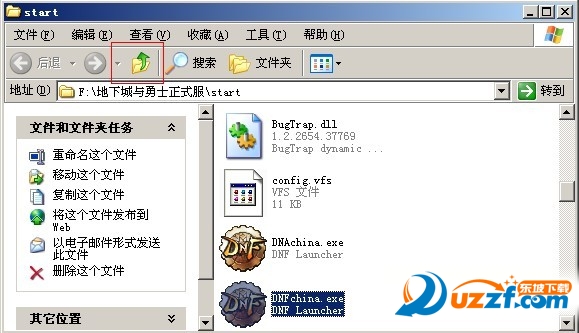 点击后会出现一个文件夹!!这个就是DNF的客户端文件夹了!我们继续!!看见红色框体的位置按钮了吗!!再点击一下!!!用鼠标左键!!不要鼠标右键!!!