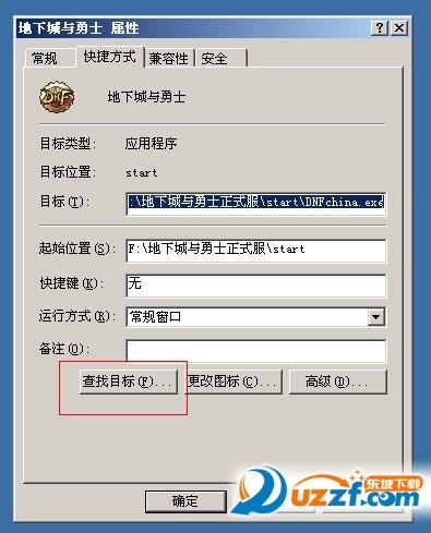 3.右键点击属性后哪么会出现这个框体,我们无视其他的!直接点击上图中的红色框体按钮(查找目标)