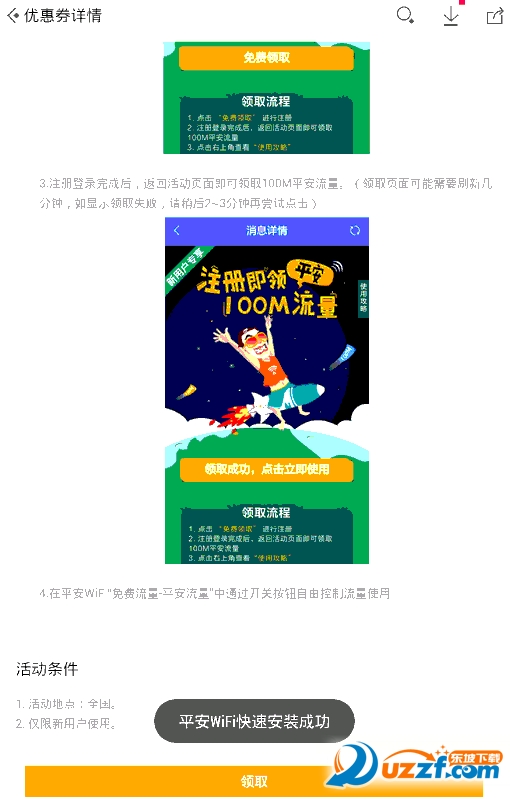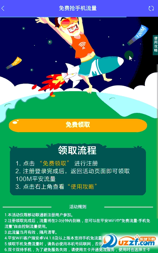 新用户注册就可以参与活动领取100M流量了