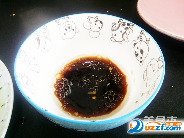 调拌汁。碗中加入生抽,盐,糖,香油,醋调成汁。(具体用量可根据个人口味增减,把握不好的话,用舌头。尝尝:)