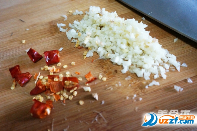 蒜姜切末,干辣椒洗净剪成小段。