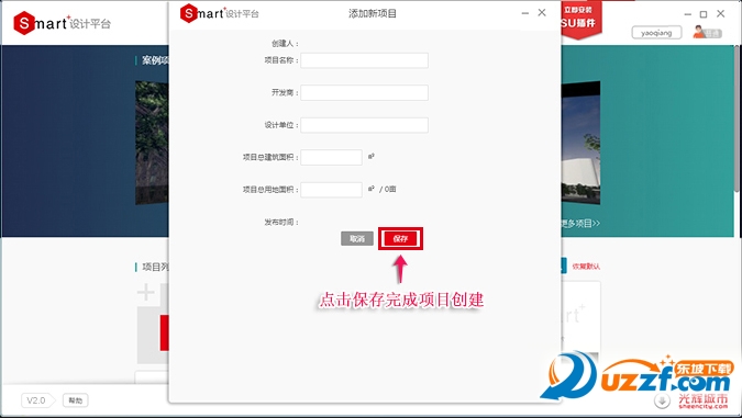 点击新建项目后,弹出对话框,填写基本信息,以创建项目,如图4.1-2。项目名称为必填项,若此时其他项目信息不全,可暂不填写,后续进行编辑修改。