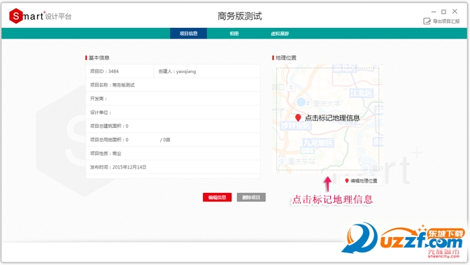在项目基本信息里加入地理信息,如图4.2-1,点击标记地理信息,进行地理位置编辑;