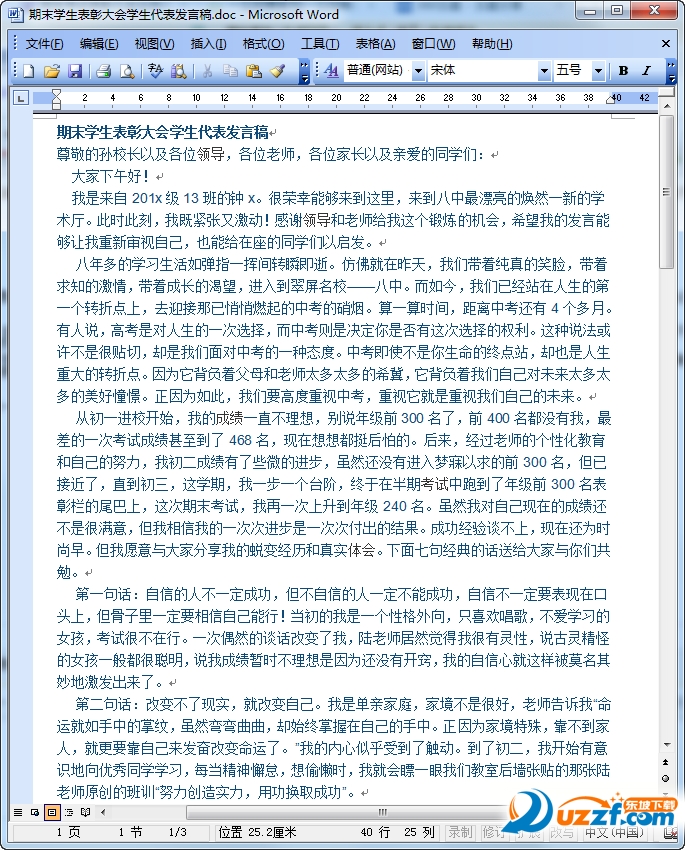 期末考试表彰大会学生代表发言稿预览