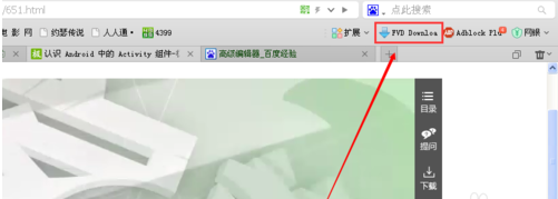 打开某在线教育视频网站,找到要下载的视频,以Android视频为例,点击播放,然后看到Fvd Downloader图标会亮起来,如下图