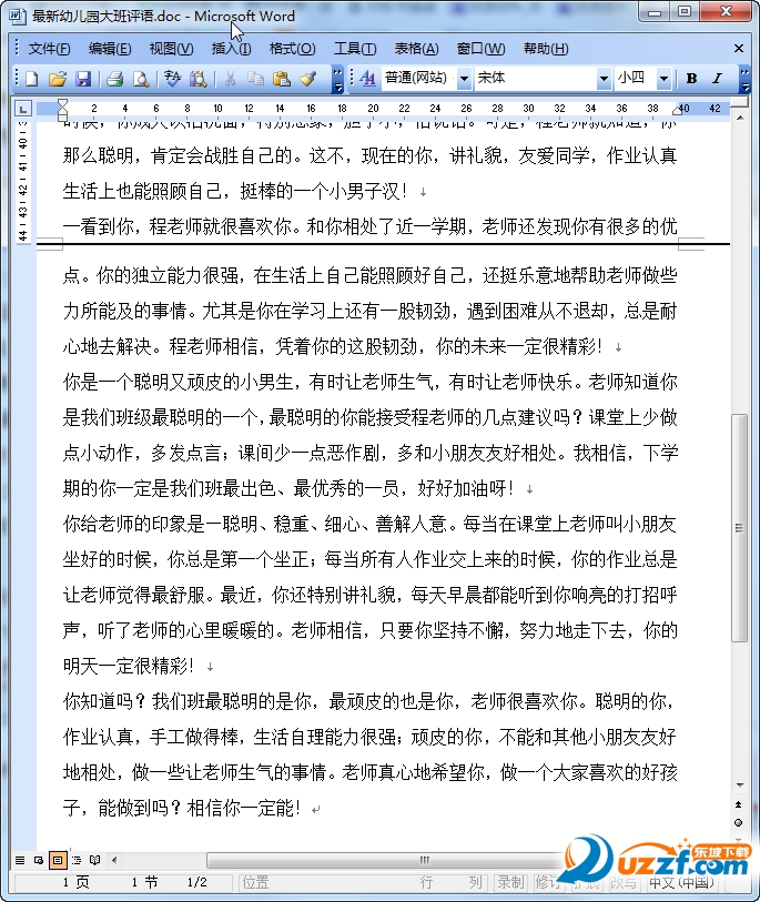 幼儿园大班期末评语预览