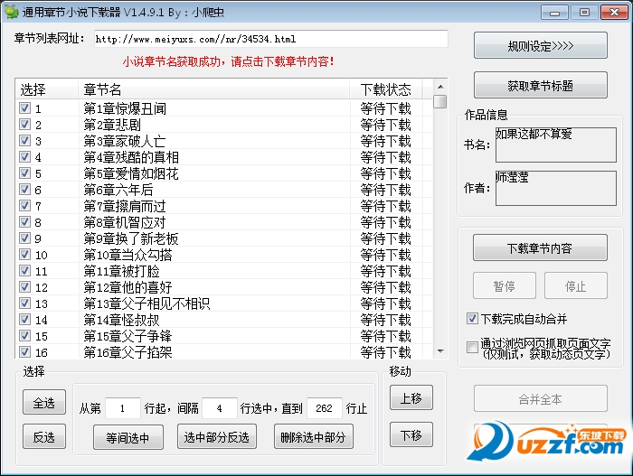 通用章节小说下载器主要用于静态网页小说页面文字的获取,并合并成TXT保存到本地。