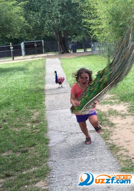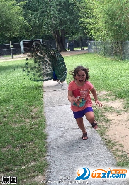 最新外国网站上面火爆一张配图陪各种玩法,给玩坏了了,小编整理的一下,有些东西不能一个人污啊,满满的恶搞小女孩被孔雀追跑表情包,喜欢就拿去吧!