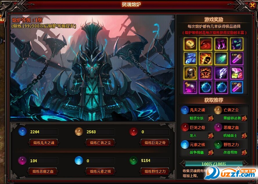 奖励:熔炼不同怪物的灵魂,获得的奖励不同。