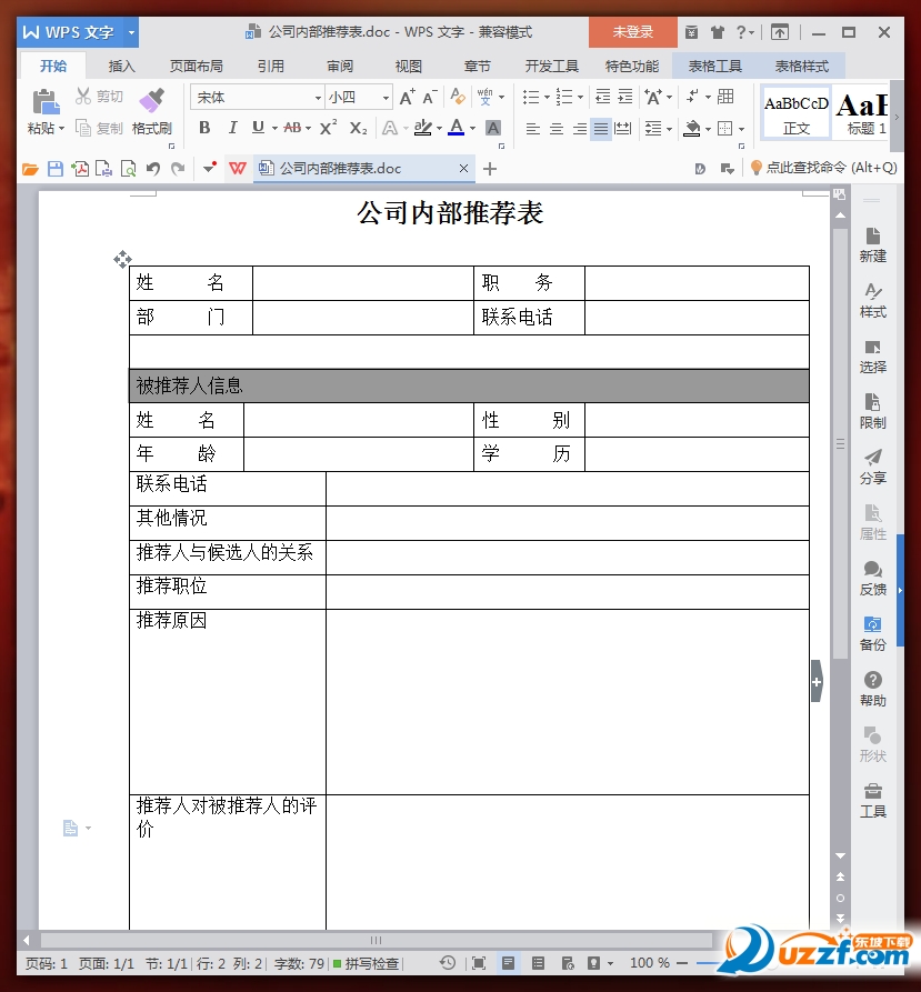 伯乐奖制度公司内部推荐表预览