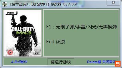 使命召唤8:现代战争3通用修改器是使命召唤修改器的一个系列的作品,使命召唤玩单机的朋友应该都知道的,不过我也是去年才接触,使命召唤8:现代战争3通用修改器必须要先运行游戏,才能正常使用修改器了,简简单单就一项:F1:无限子弹 + 无限手雷 + 无限闪光 + 一些无限高科技。