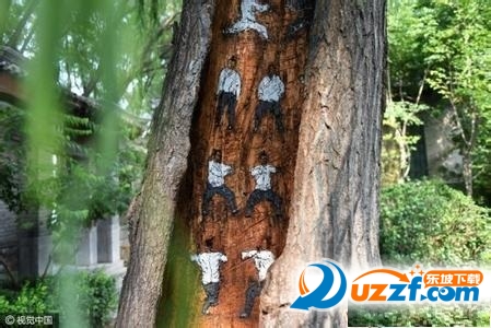 6月28日,大明湖南岸遐园一处树洞里惊现神秘“武功秘籍”,人物刻画惟妙惟肖栩栩如生。据了解由于柳树树龄过大,其中木质部受病虫害危害 已经腐朽,为恢复树势,减少病虫害危害,园容工作人员将腐朽部分去除,对树干进行杀菌处理并涂抹桐油,然后用丙烯颜料进行艺术化创作。因这株大柳树旁边就 是太极拳的练习场所,设计团队就将太极拳的基本动作进行了拍照,并绘制到树洞当中。