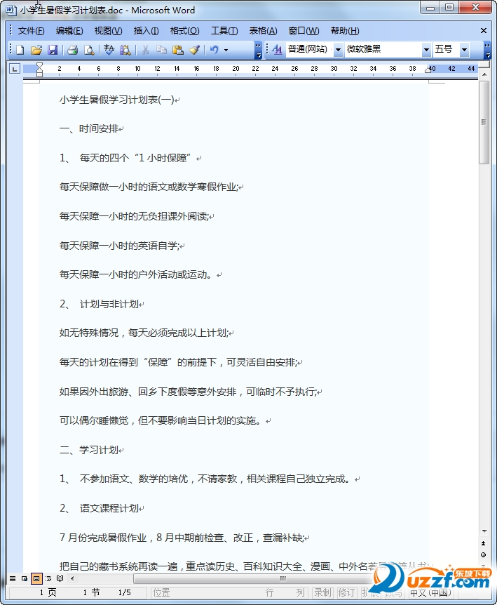 小学生暑假计划表预览