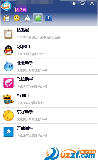 消息群发助手用于实现消息群发功能,从一定的程度减轻客服消息发送的工作效率。该功能仅为模拟人工操作,具体发送数量跟人工操作一样。目前提供的助手有:QQ助手、旺旺助手、飞信助手、YY助手、京咚助手。界面如图所示: