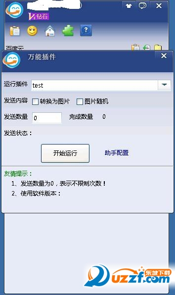 自定义插件功能用于用户根据个人需要,编写软件扩展插件,扩展的插件,仅用于消息发送等。界面如图所示: