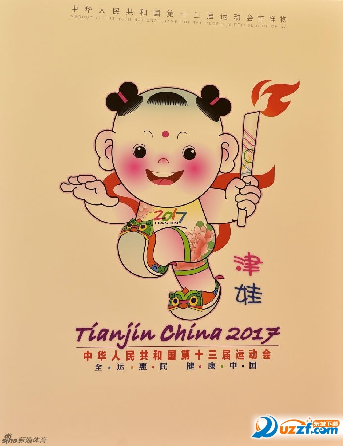 象征“津”字与海河元素的“十三运会”会徽和吉祥物“津娃”正式亮相。吉祥物取名为“津娃”,取材天津杨柳青年画,具有浓郁的天津特色。“津娃”身着牡丹花图案服装,脚穿虎头鞋,做出跳跃的动作,传递出运动的概念。十三运会将于明年9月在天津举行。
