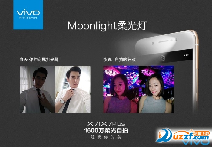 【Moonlight柔光灯】X7增加了特殊的Moonlight柔光灯。光线不佳时,Moonlight柔光就会自动开启。其模拟人像写真使用的苹果光,无论白天夜晚,都能做到最健康自然的自拍。
