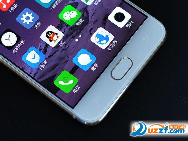 与市面上一些类似设计的手机不同的是,在实体HOME键两侧是菜单和返回两枚虚拟按键。当轻点HOME键某一侧时虚拟按键会亮起,如下图,由于白天拍摄不是很明显,可能要仔细一点才看得出来。短时间未操作指示灯将熄灭。个人感觉虚拟按键的存在是有必要的,FunTouchOS的界面交互部分没有设计返回键,倘若没有了虚拟按键,UI要更改的地方就多了。