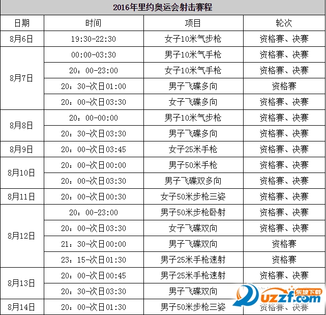 2016里约奥运会射击赛程表说明
