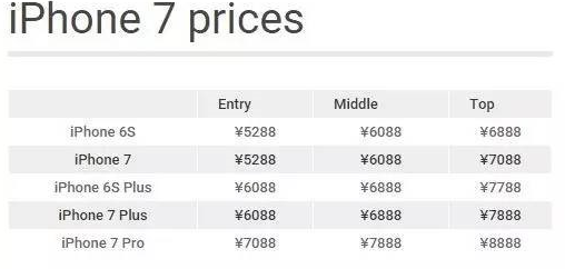 iPhone 7价格