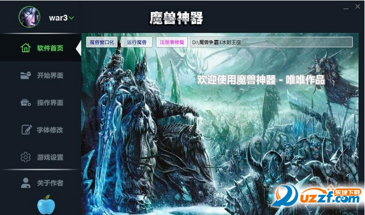 魔兽神器是专为魔兽争霸爱好者而制作的,简洁明了的界面使得刚使用软件的人就能熟悉操作。自动识别魔兽争霸安装路径和版本信息,如果使用的是硬盘未安装版可用注册表修复.