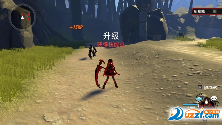 左上角地图,但是只显示敌人和任务地点位置,不显示详细小地图(尽管地图可探索空间很小)升级之后可以获得技能点,在右上角出现提示。