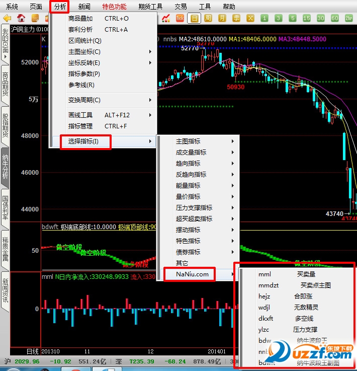 4、博易大师使用简捷方便、功能完备实用、股市行情数据接收快速准确;集成自定义指标、套利分析、商品叠加、快速下单程序化交易等多种实用工具