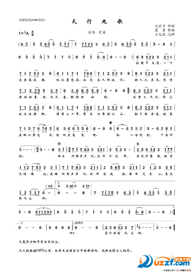 天行九歌 简谱